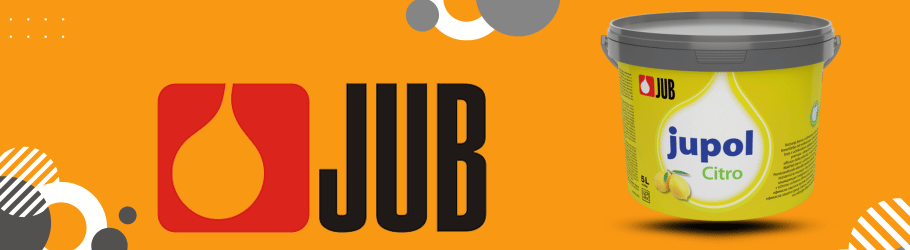 Jub je renomovaný slovinský výrobce zejména interiérových a fasádních barev. Kromě barev jako takových jsou od tohoto výrobce zajímavé také interiérové dekorativní techniky Jub Decor – dekorativní stěrky a nátěry, příkladem z těchto výrobků uvedeme Jub Cashmere, Desert, Delight, Marmolin, Antique, Glamour a Crystal. Jub jako výrobce také dbá na ekologii a zdravé bydlení. Interiérové barvy pro zdravé bydlení najdete pod označením Wellbeing. Produkty Jub Vám natónujeme online podle vzorníku Jumix případně i podle vzorníků NCS, RAL, případně Dulux.