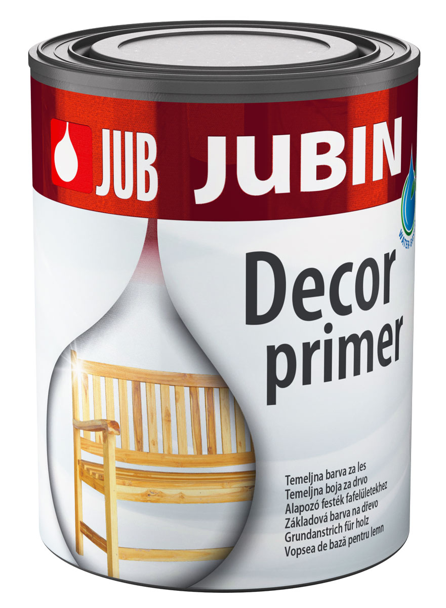 JUB JUBIN Decor Primer 0,65 l bílá - ekologická, vodou ředitelná akrylátová základová barva na dřevo, bez nepříjemného zápachu, s nízkým obsahem organických těkavých látek, rychleschnoucí. Používá se jako základní nátěr pro ochranu venkovních a vnitřních dřevěných povrchů před nanášením krycí barvy na dřevo. Nátěr účinně blokuje tanin a suky. Splňuje požadavky EN 71-3 a EN 71-9.